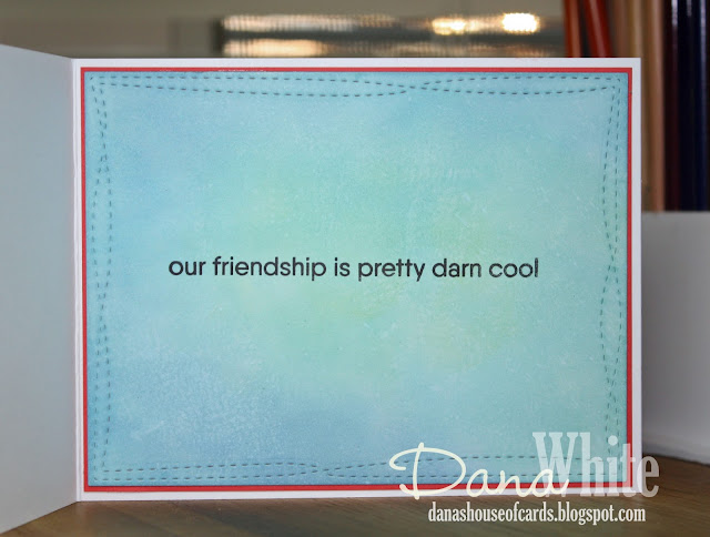 I used the same back ground on the inside and again used the wonky stitch dies and a sentiment from the Because you set.